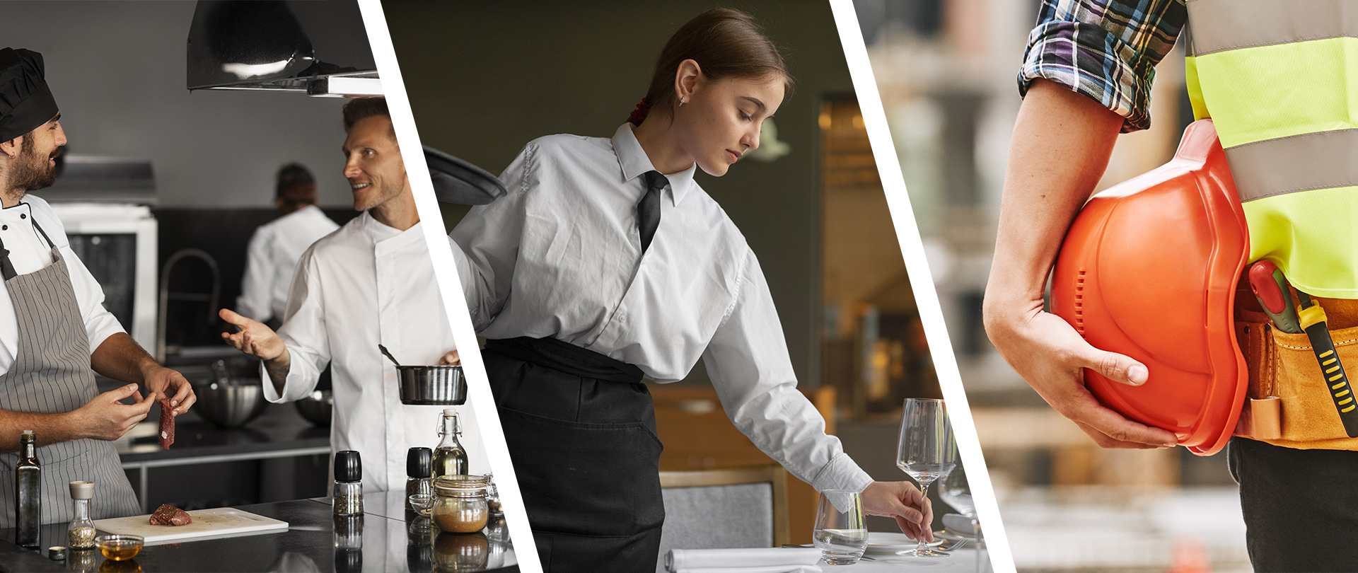 Textile, chaussures pour le service en restaurant et l'accueil.